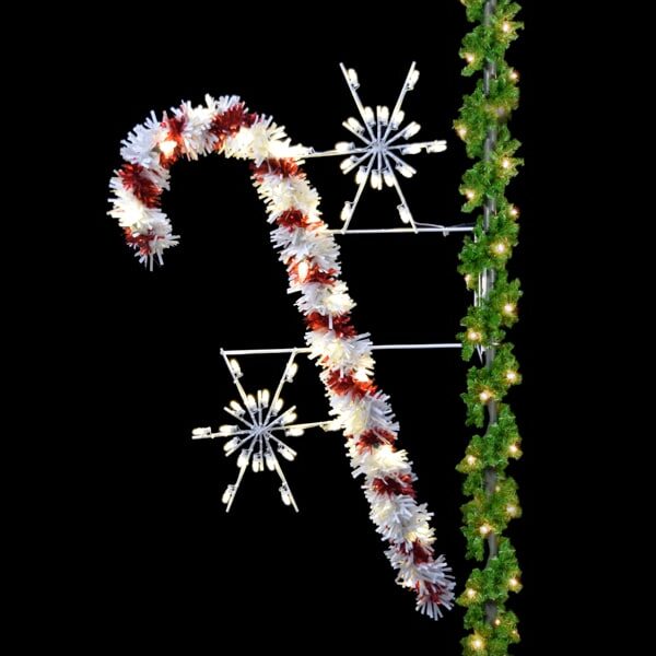 7′ Enhanced Sparking Candy Cane with Snobursts Pole Mount, 36 C7 & 17 C9 Lamps, 26.2lbs.