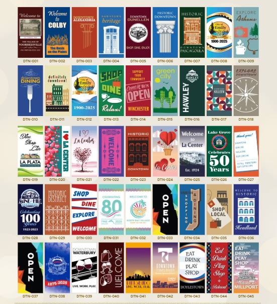 Events and Downtown custom banners, perfect for lining streets, parks, and shopping districts for events in your area. To learn more about our custom banners, please click here to access our banner designs, or click here to schedule a call with our team.