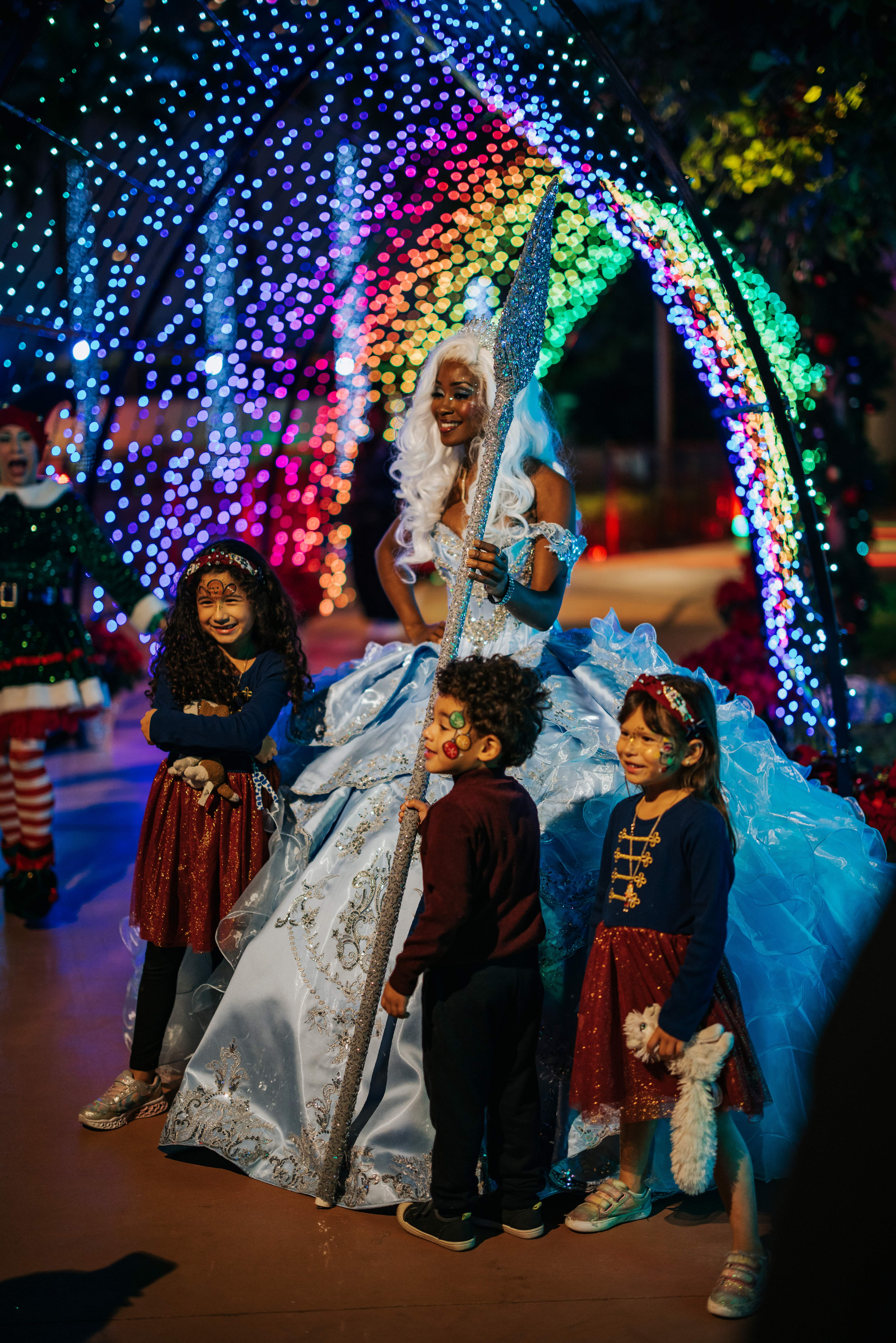 The environment blended holiday storytelling, photo moments, live performers, and music-driven light choreography.