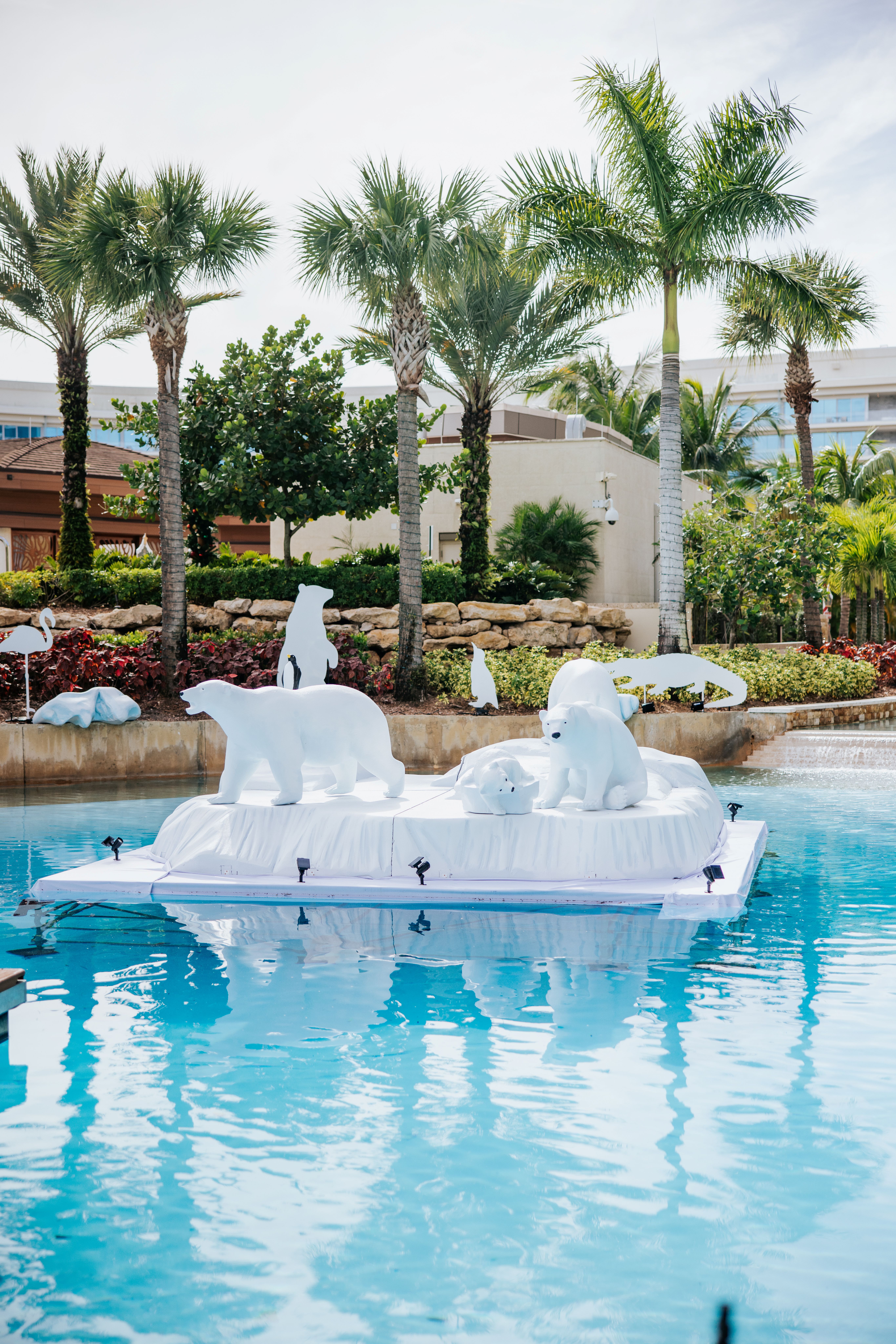 Property Integration: Designers mapped each display into the resort environment digitally. This ensured the décor complemented the dramatic architecture of the Guitar Hotel and surrounding lagoon while maximizing visibility from key guest viewpoints